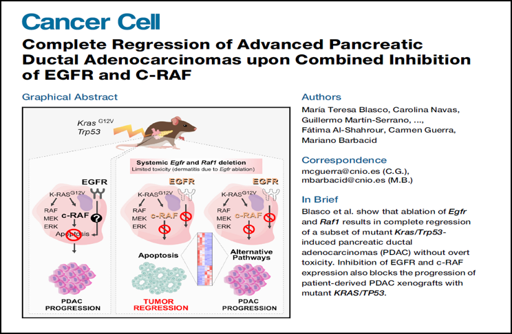 El grupo de Oncología Experimental del CNIO, dirigido por el Dr. Barbacid ha conseguido demostrar que las 3 dianas combinadamente detienen el desarrollo del cáncer de páncreas humano en modelos animales.